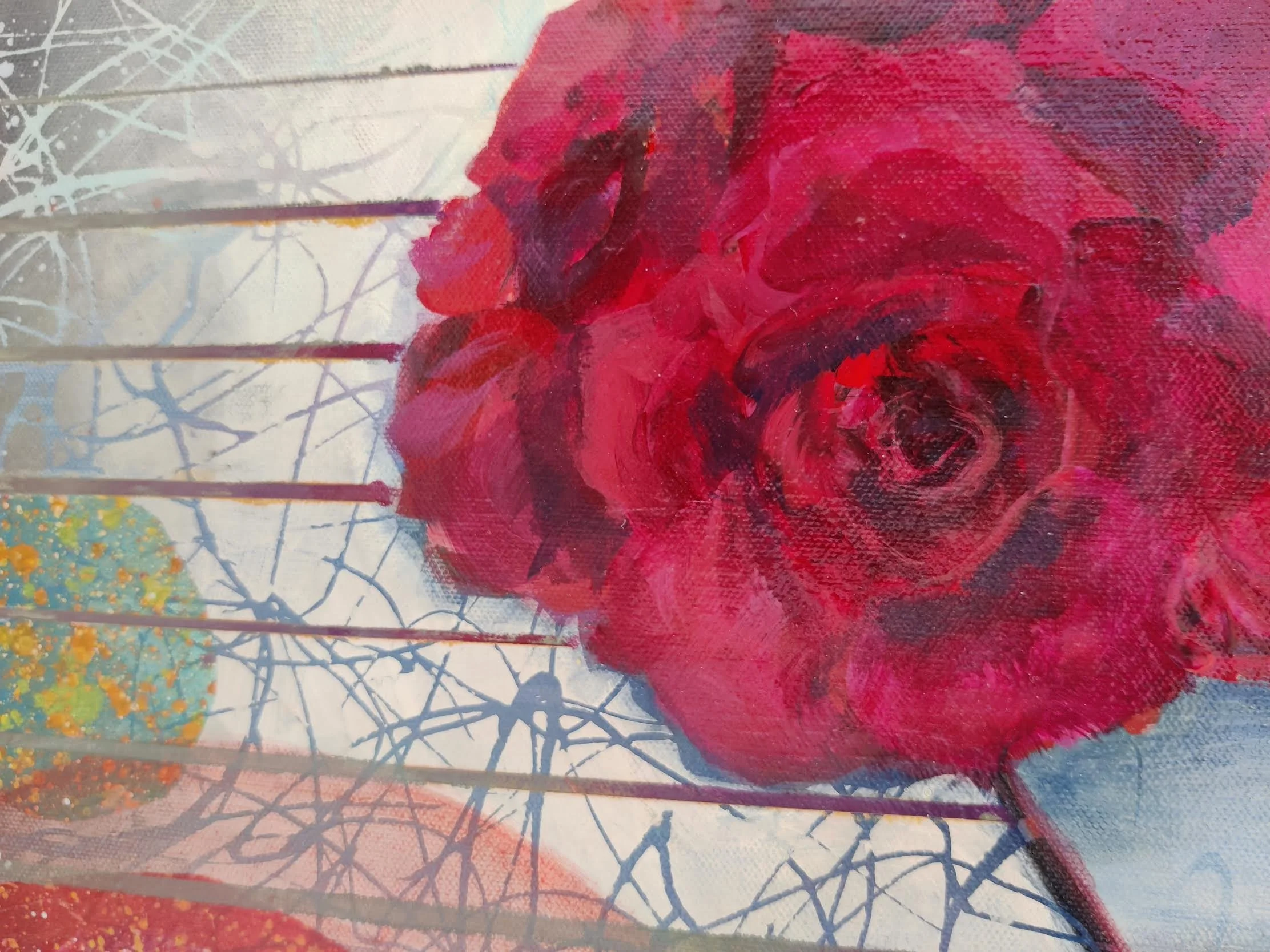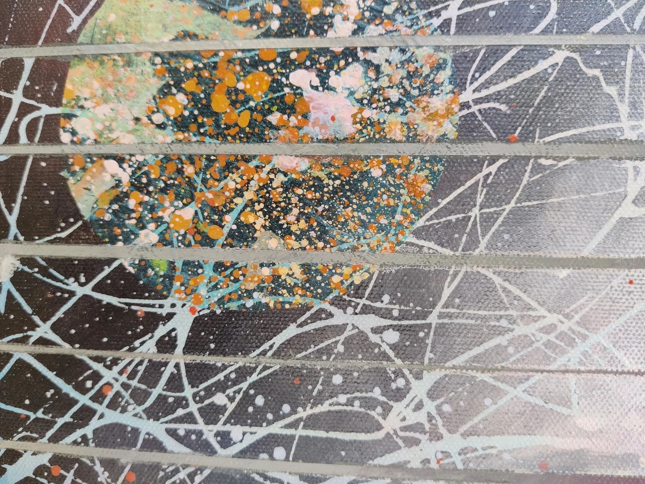 This dramatic piece by Sabrina Laumer invites the viewer into a moment of spiritual recognition — a space where physical form dissolves into energy and presence. Through a cosmic profusion of color, gesture, and atmosphere, the work reflects an intuitive dance between matter and spirit.