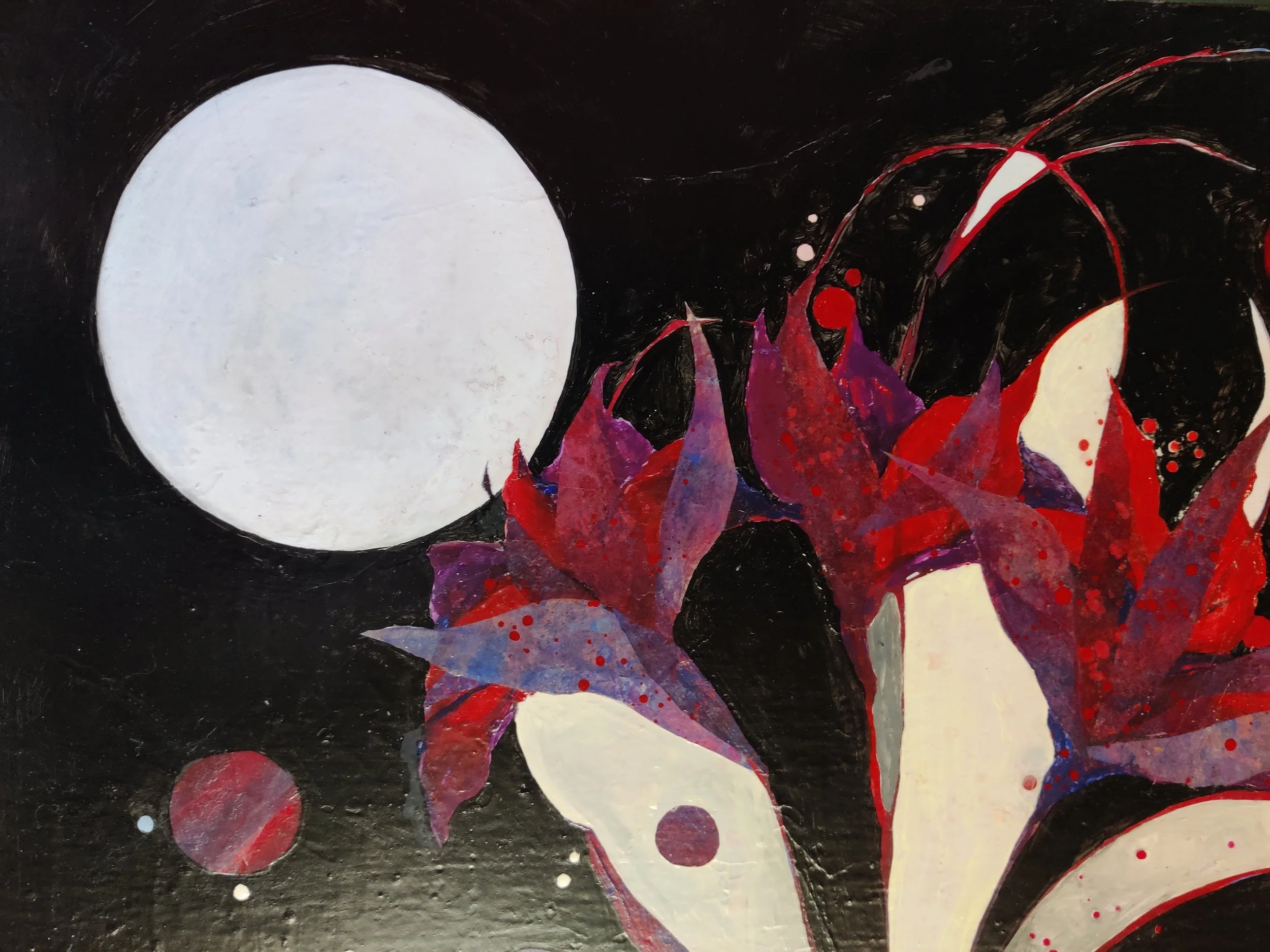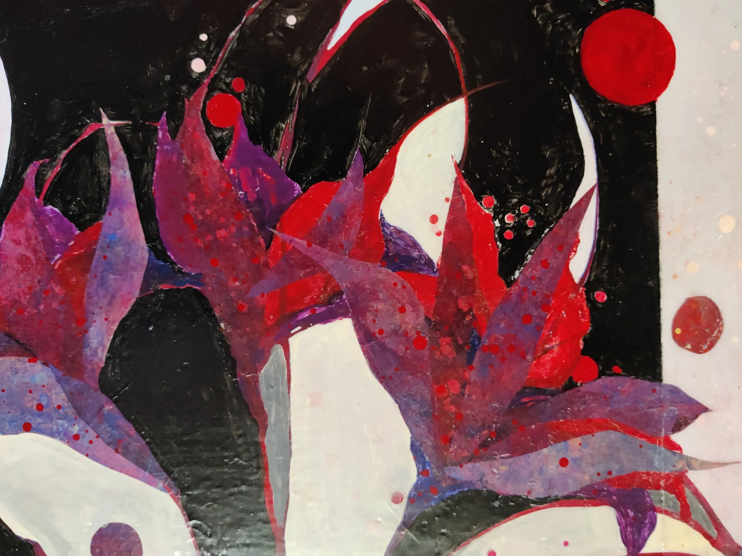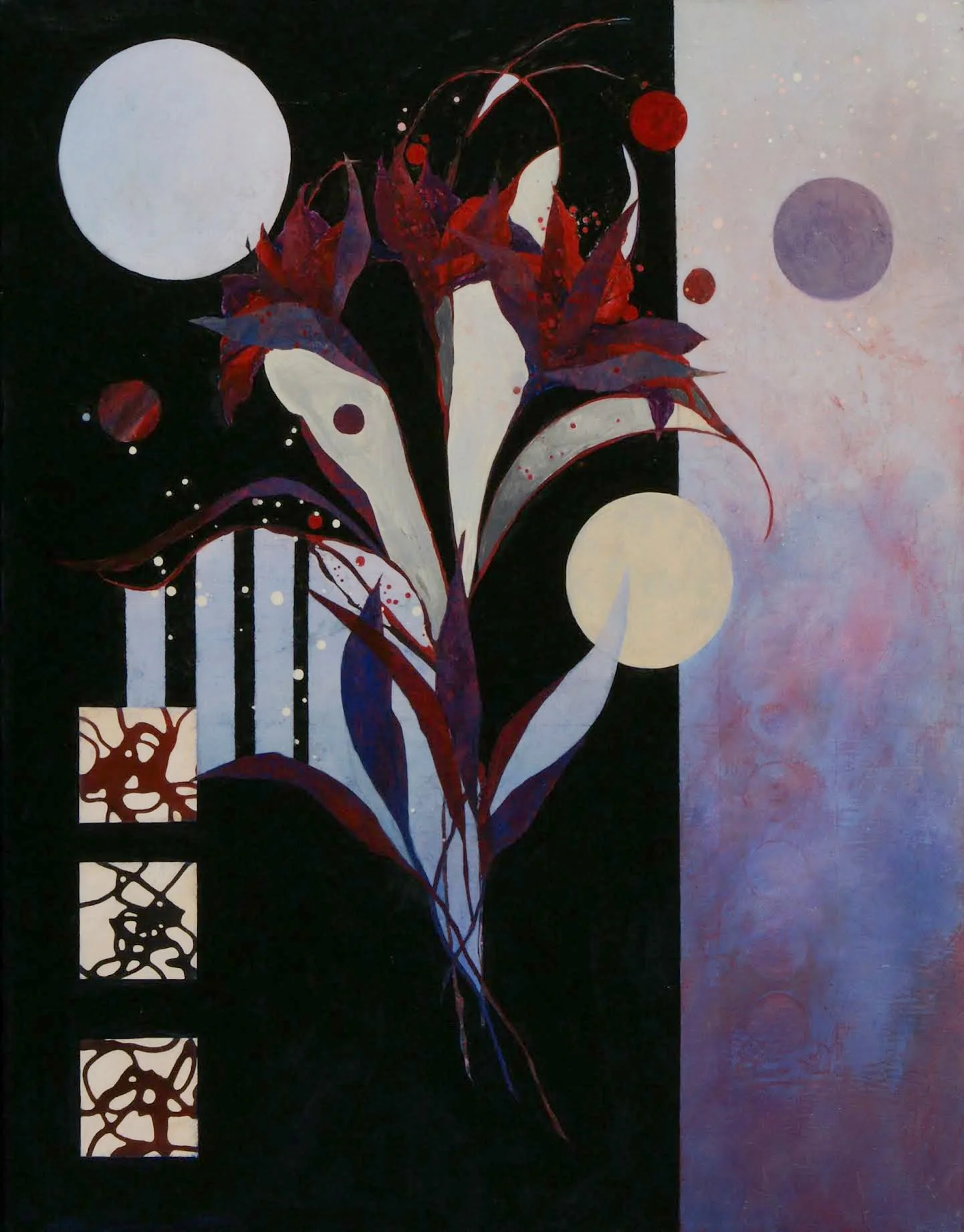 This piece emerged slowly, passing through many ideations — forms created, then peeled away — as though the painting itself had to clear space for what was meant to appear. It is an offering born not just of brush and pigment, but of surrender. A glimpse behind the veil.
