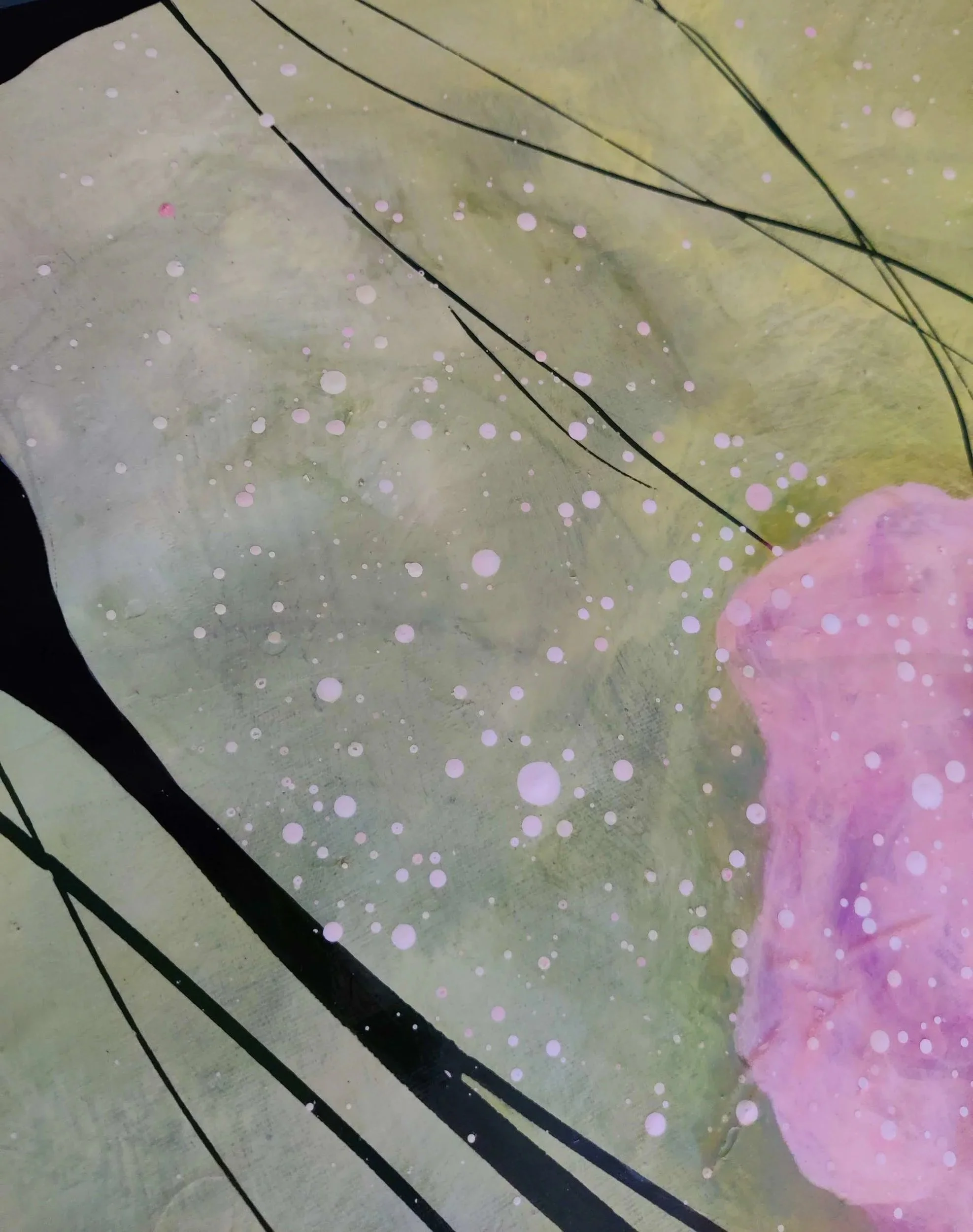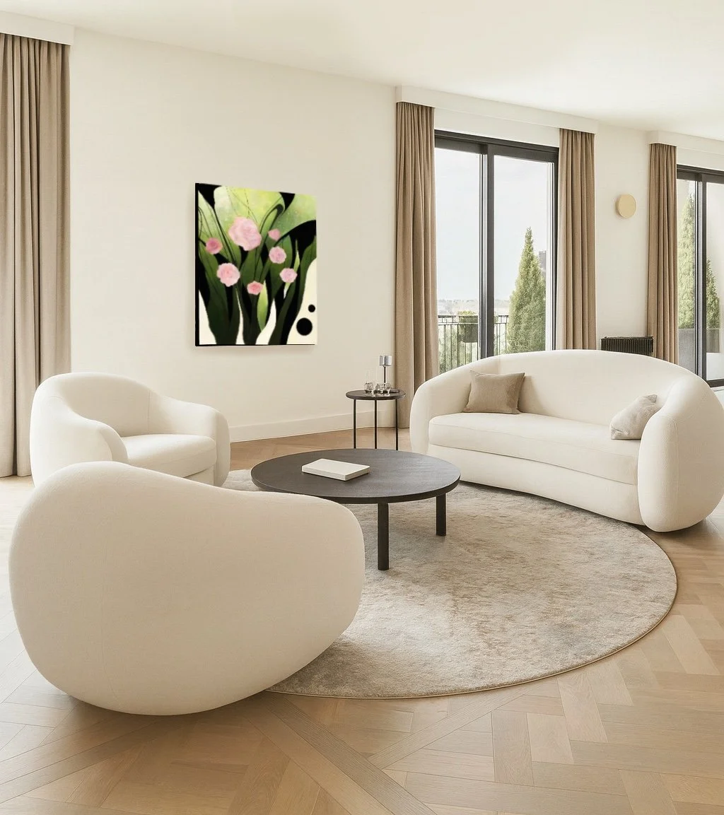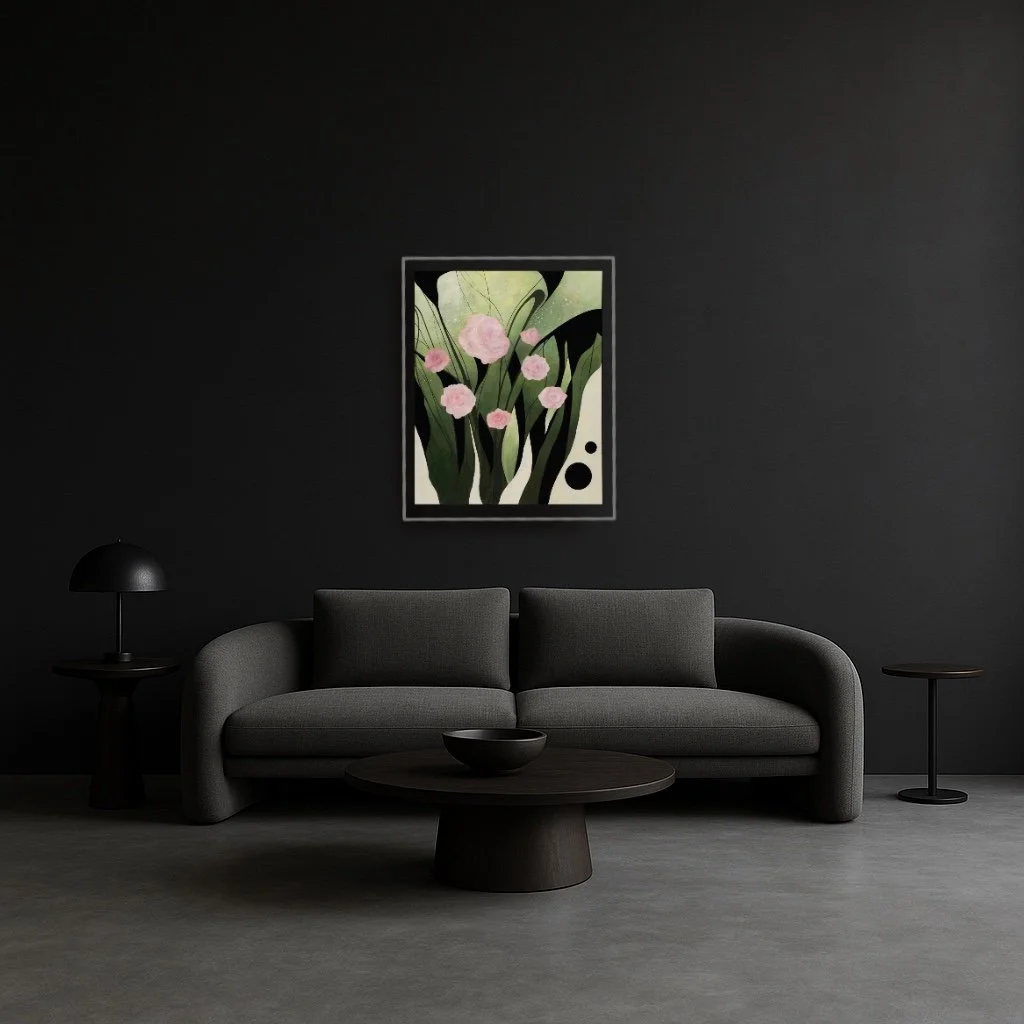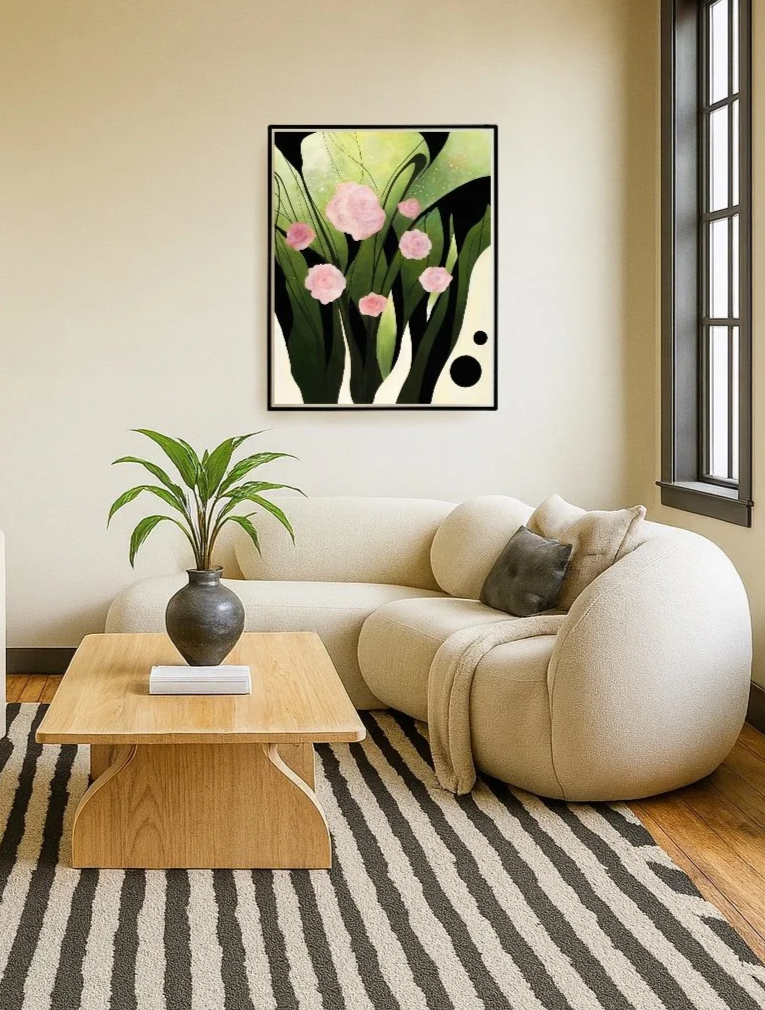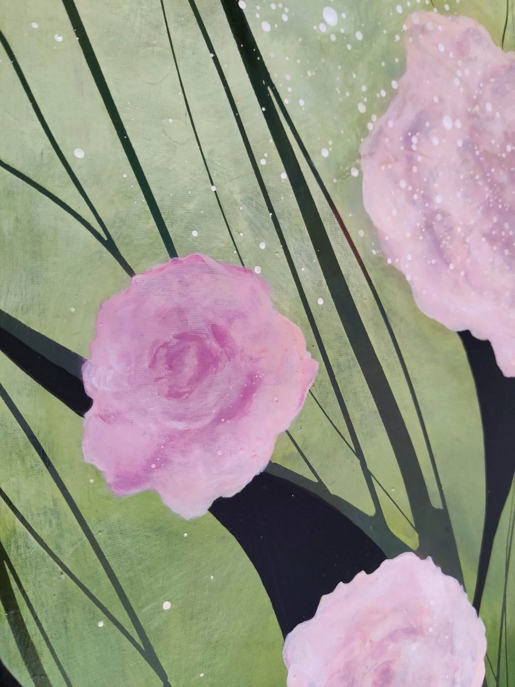 Rendered in elegant, fluid forms — with echoes of Art Nouveau’s softness and Art Deco’s solidity — this painting holds both the joy and sorrow of being alive. It is an invocation to breathe in the scent of roses that bloom only for a time, yet live on in the quiet places where memory endures.