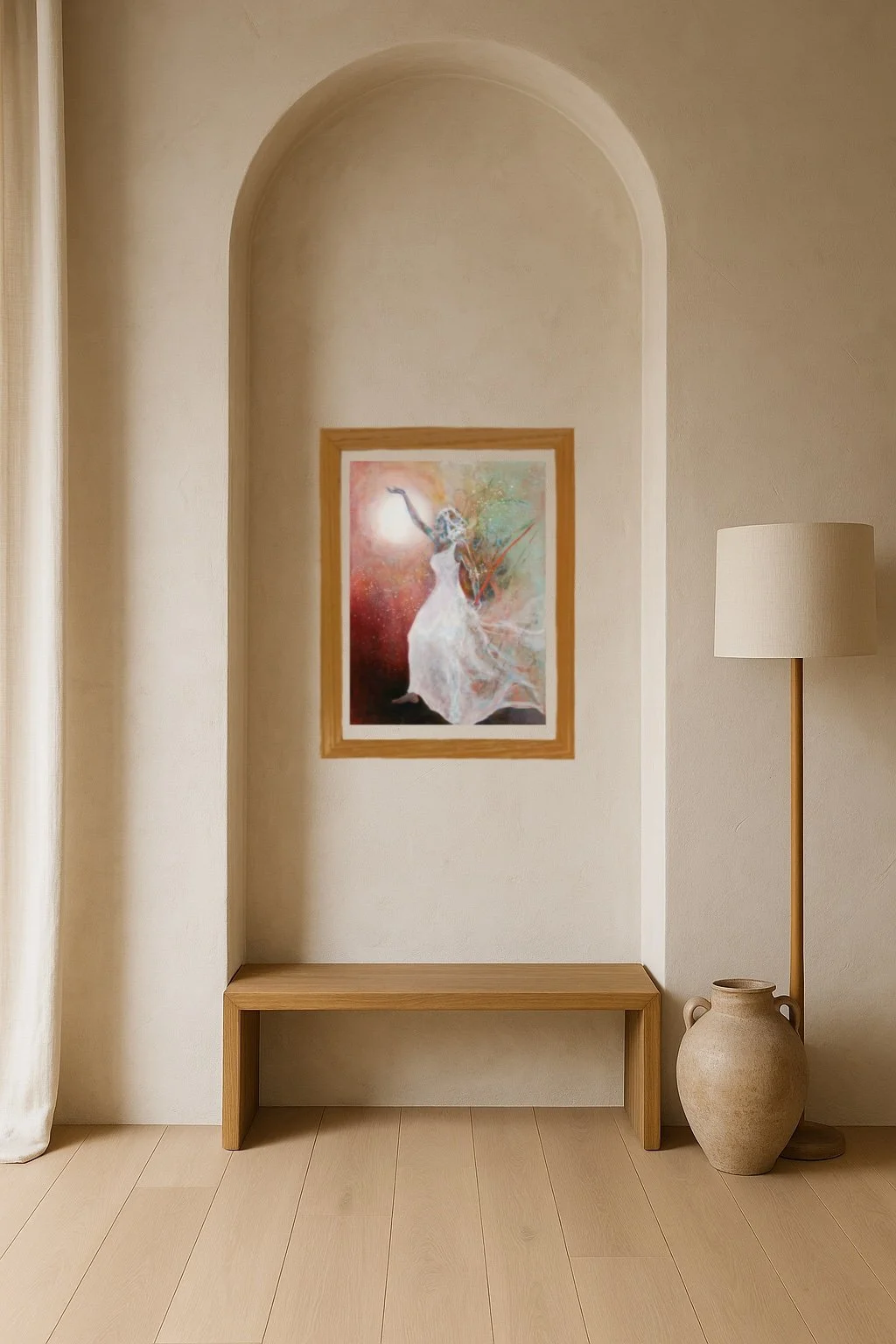 Warrior of Light is a portrait of spiritual resilience — a figure bathed in light, in grounded, radiant presence. She is not defined by battle, but by her role as a keeper of truth, peace, and sacred clarity.